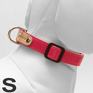 【適応サイズ】首周:約22cm〜35cm、体重10kgまで、紐幅:15mm 【材質】表地/裏地:合成皮革、牛革等 ◆色にこだわったシンプルなデザイン。合成皮革の中でもとくに柔らかなものを使用しています。